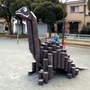 横浜市神奈川区の大口公園には丸太を組み合わせて作った竜脚類型の遊具があるとのこと、さっそく見に行ってみました!