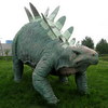 芝生の広場に堂々としたリアルなステゴサウルスがいます! 完成から30年、維持管理が悩みのタネとか・・・