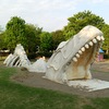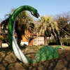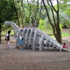 海を泳ぐ巨大な海棲爬虫類の骨格?がある南部中央公園は、恐竜遊具も充実していた! 設計者は相当な恐竜好きか???