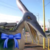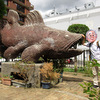 1990年3月に登場した造形作家・松本哲哉さんが作ったシーラカンス像「幸福の魚GOMBESSA」
