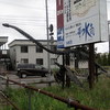 内部の鉄骨がさびてフタバスズキリュウはいなくなってしまった・・・看板もポスターも色々変わりました。。。