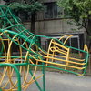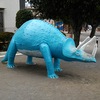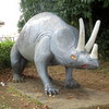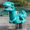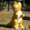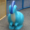 ティラノサウルスとトリケラトプスがいる公園にいる不思議な生き物のオブジェ。またがって遊べるカワイイ遊具です!