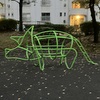 恐竜型のジャングルジムがいます。トリケラトプスとステゴサウルスかな?