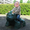 大きな都営団地の隣にある芝生や緑が多い憩いの公園。ここに日都産業のリンクミニ トリケラがいます! 伊 謄 さんのツイートで知りました!