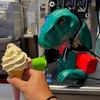 人手不足の救世主登場! 恐竜王国福井の入口でアロサウルスが上手にソフトクリームを作ります! パトリックさんから写真と動画をいただきました。ありがとうございます!