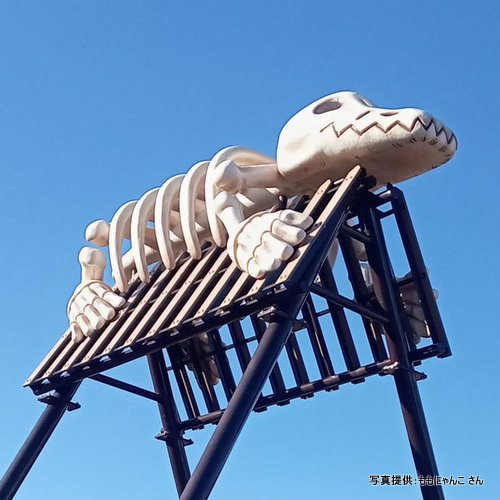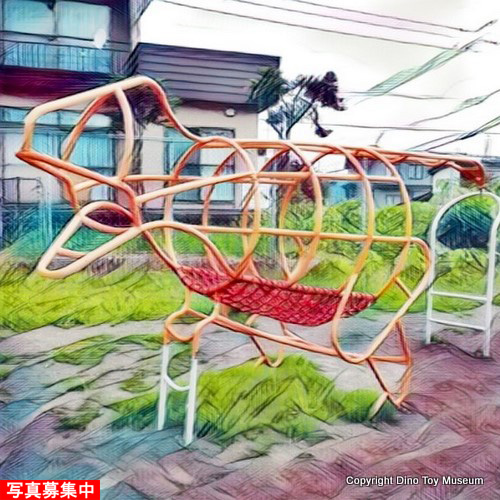 ■ 足の休憩室「乗りテツ愛好会」(略称 テツ「愛」) 宇宙軒カーブ途中の柴口石材の恐竜