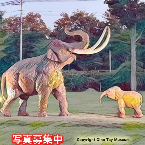 ■ 恐竜像:ナウマンゾウ化石、屋外に親子ナウマンゾウ