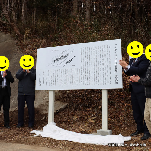 河北新報 イナイリュウここにいた! 82年前の化石発見地に看板設置