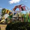 広くて遊具もたくさんあり、桜の名所としても人気の公園にティラノサウルス型のジャングルジムがあります。
