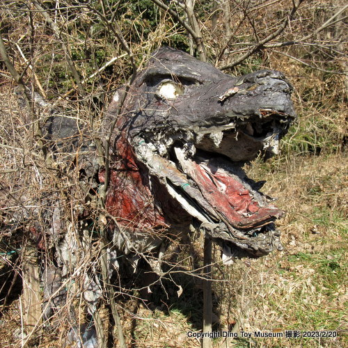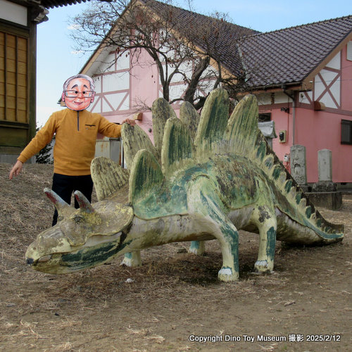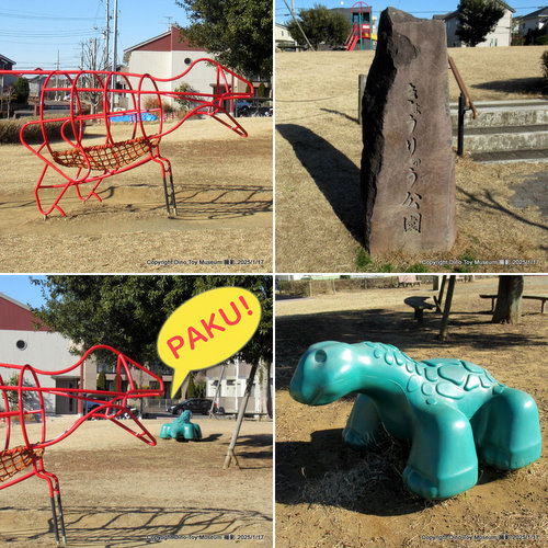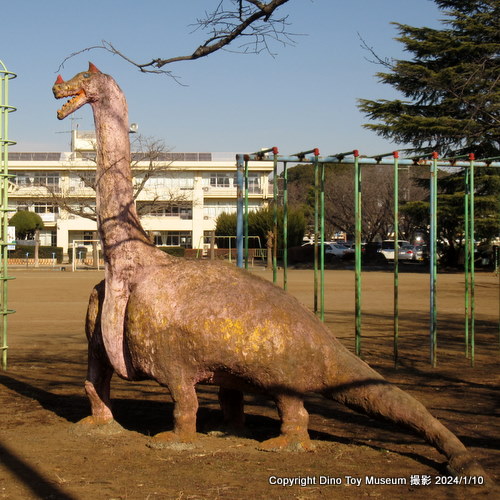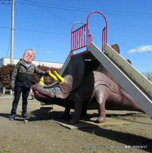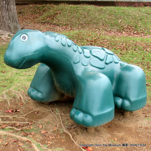 ◆ 土浦の住宅街の幼稚園でサッカーボールに右足を乗せている恐竜遊具を見かけました!(2023/11/9)