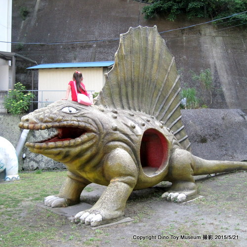 この公園には実物よりもずいぶんと大きくて、お腹の中に入って遊べるディメトロドンの遊具と小さな象がいます。恐竜でないディメトロドンですがやっぱり「恐竜公園」と呼ばれちゃう・・。