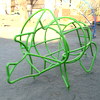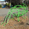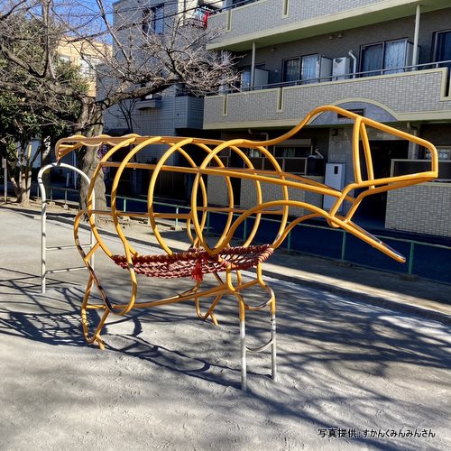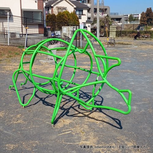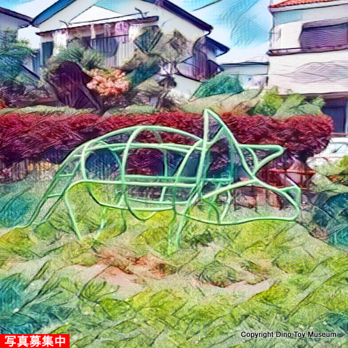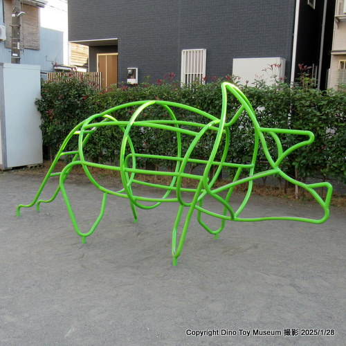 東急・東白楽駅からすぐの住宅街の中の憩いの公園にパイプでできたトリケラトプス型のジャングルジムがあります。