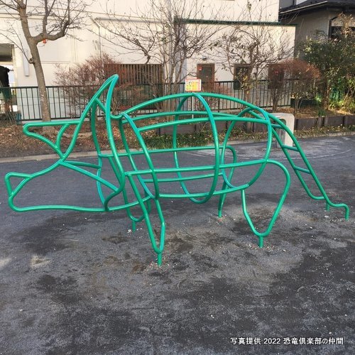 ◆ 恐竜型のジャングルジムがいます。トリケラトプスとステゴサウルスかな?(2022/12/21)