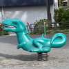 住宅地の中の憩いの児童公園”深堀公園”の遊具の中にGameTime社の紫色のベロキラプトルのスプリング遊具があります。