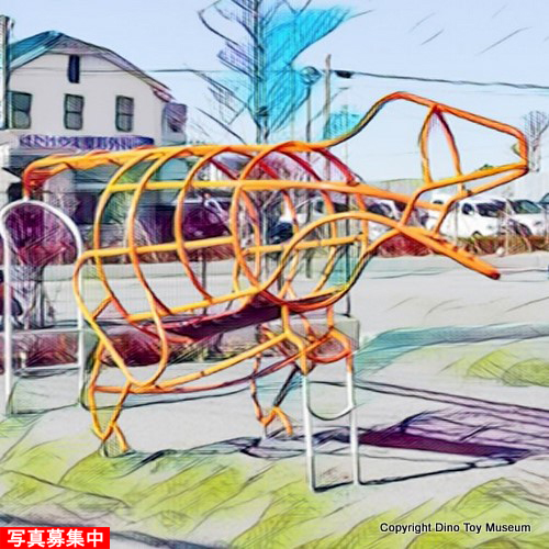 ■ 恐竜像:恐竜型のジャングルジム(トリケラトプスとステゴサウルス?)