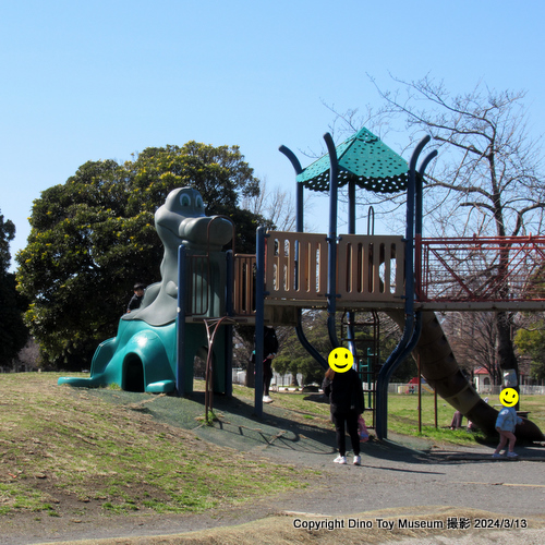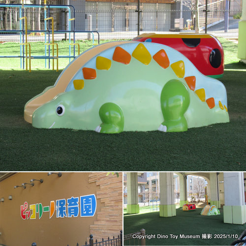 ◆ 横浜の恐竜公園探検中、園庭にいたステゴサウルスっぽい幼児向けすべり台遊具を偶然発見!(2025/1/14)