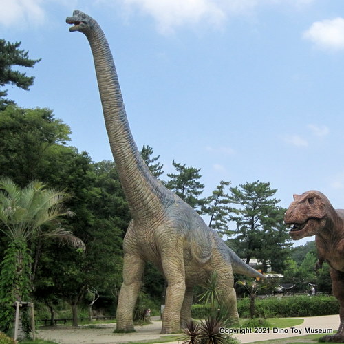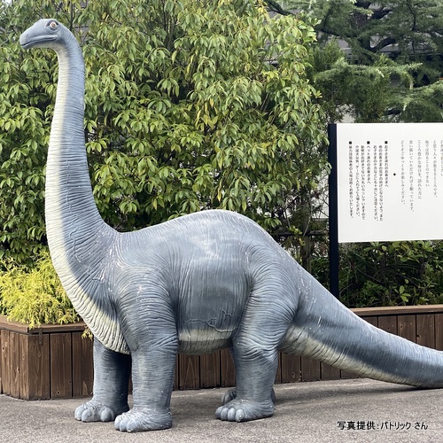 野外恐竜ランドの最大恐竜ブラキオサウルスは開館30周年記念事業で公募され、熊谷晃伸さんのイナヅマをイメージしてた作品のカラーリングに変更されています!