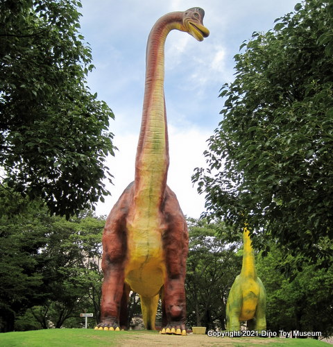 豊橋市自然史博物館の開館は1988(昭和63)年5月1日、野外恐竜ランドの野外恐竜の設置時期は1990(平成2)年3月、野外恐竜の製作は日東商事が行ったそうです。自然史博物館の方から教えていただきました。ありがとうございます。