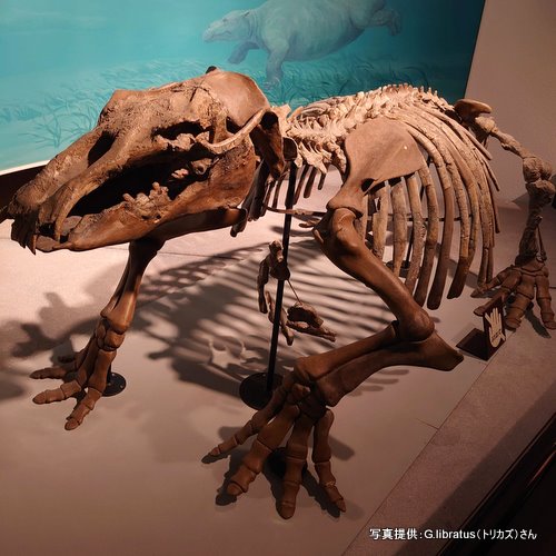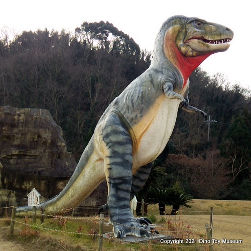大きな建物の鳴本石材株式会社さん、本社の入り口脇に石材でできた恐竜の全身骨格像がお客様を迎えています。 maimaiさんから情報をいただきました。