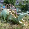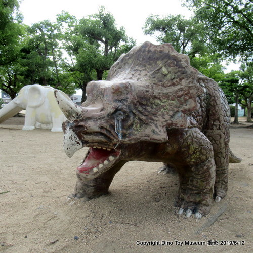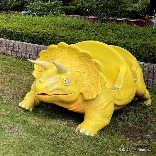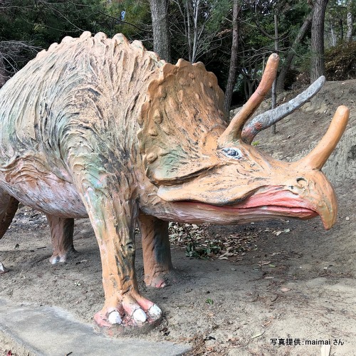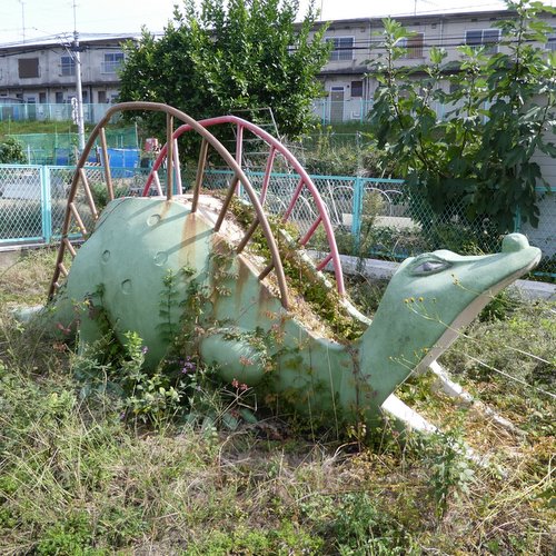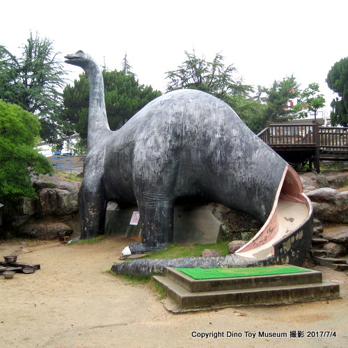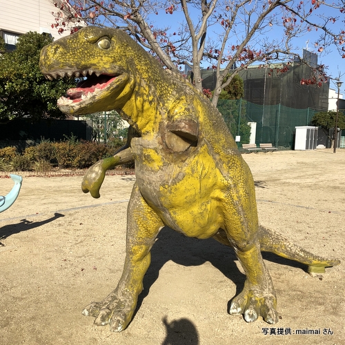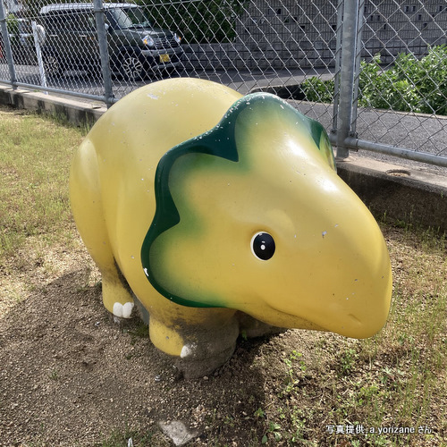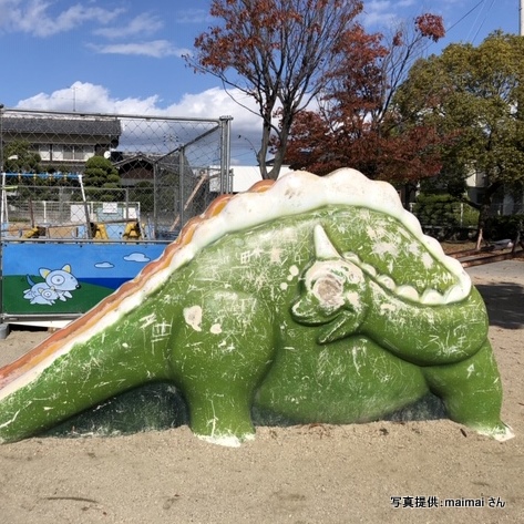 FRP製の小さな恐竜すべり台がある公園。香川県のシュライヒカフェ、岡山県のひばり公園を教えてくれたmaimaiさんからの情報です。公園のリニューアルでアルゼンチノサウルスみたいなすべり台は撤去? 恐竜すべり台の運命は??? maimaiさん情報と写真ありがとうございます!