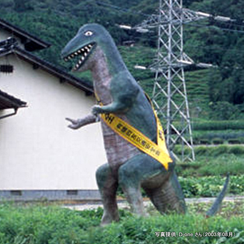 岡山県にある山陽ガスの本社・住まいる館の前に巨大なブラキオサウルスとティラノサウルスがいます。小さなアニメ的な恐竜たちもいてお客様を待っています! ブラキオサウルスは2012年にやってきたそうです。 maimaiさんから写真をいただきました。ありがとうございます!