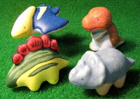 人形に色を塗る屋台がでていました。恐竜の他に動物などもあり、やっぱりウシや犬猫が人気でしたが、その中に恐竜5種類を発見。ティラノサウルス、トリケラトプス、ステゴサウルス、アパトサウルス、プテラノドンがあり、アパトサウルスだけ残して、残り4種類をゲット。その場で塗らずに家に帰って塗ってみました。オーソドックスにお腹部分を明るい色で、背中部分をサイのような灰色で塗ってみました。変に冒険しないほうが安心して見ていられるなぁ。