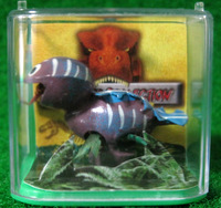 ![]() みなみ北海道の大沼公園の土産店・大沼展望閣で見つけた恐竜おもちゃ、マグネティックバトル。ギンナンのボディー、ゆらゆら動く手足、磁石で動かして遊ぶおもちゃで1つ税込100円。ボディーが水平で4本足、背中からボディーにかけて両サイドに突起が出ているので、アンキロサウルスにしました。4本の手足と口から出した舌の合計5本がゆらゆら動くお得なデザインです。 |