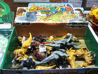 ![]() 茨城県自然博物館で買ったダッシュザウルス トリケラトプスです。ボディを押し下げてバックさせるとゼンマイが巻かれ、手を放すと勢いよく走りだすおもちゃです。実際はそんなに勢いよ走り出しませんが・・・。トリケラトプスの姿の再現もイマイチ。アーモンド形の目は白目の部分が赤い! 爬虫類っぽい表現なのか? 安っぽい感じですね。おもちゃですからこんなもんですかね・・・ちょっと残念です。