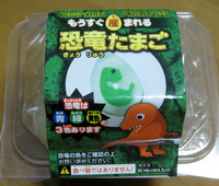 ![]() 100円ショップ・セリアで見つけた不思議な恐竜グッズ、もうすぐ産まれる恐竜たまご。青、緑、黄色の3色あるんですが、迷ったあげく緑を買いました。実際のニワトリの卵と同じ大きさのクニャクニャ・ベタベタの不思〜議な外側、その中に液体?が入っていて、卵の中で育ちつつあるヒナの模型が入っている・・・、中も外もキモイ! アイデアは楽しいけど、外側が破れたら間違いなく中の液が出てきそうだし、舐めても平気なの? 子どものおもちゃとして売ったらいかん感じがします。恐竜グッズとしては面白いんですけどね・・・。